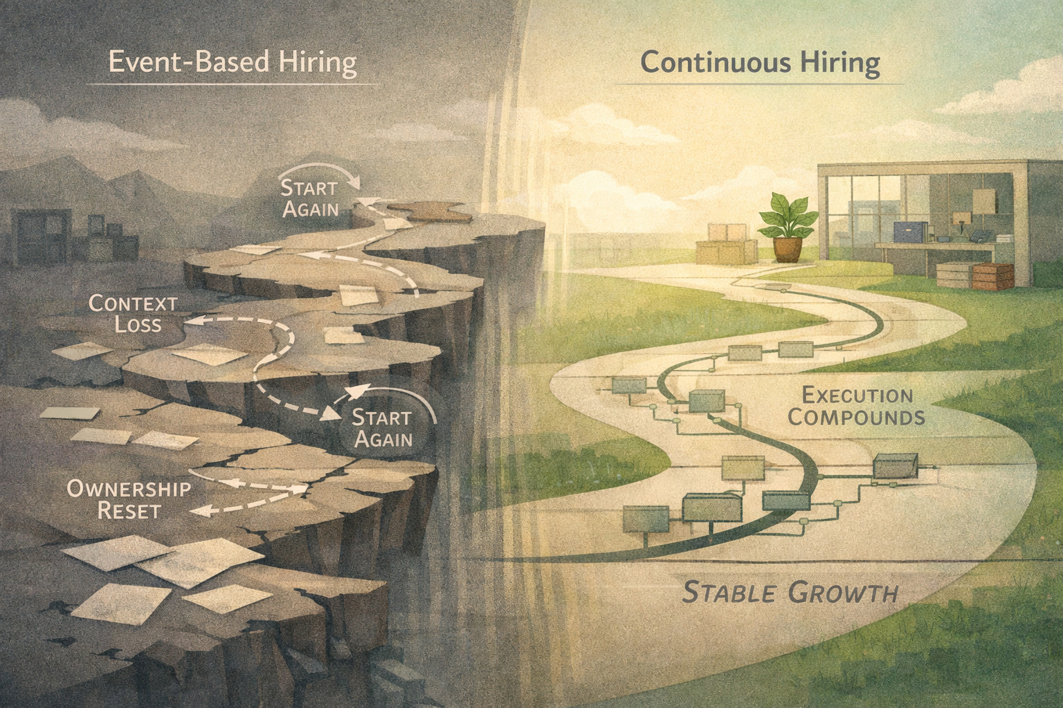 This shift — from episodic hiring to continuous ownership — is what separates scaling teams from stalled ones.