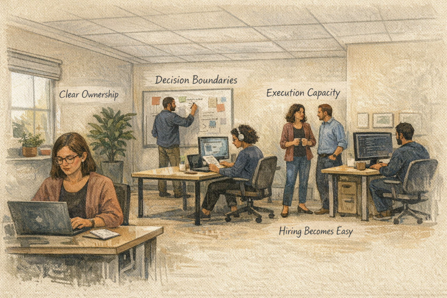 - Hiring feels hard when the company can’t absorb ownership and decisions — not because candidates are worse or the market is tougher.